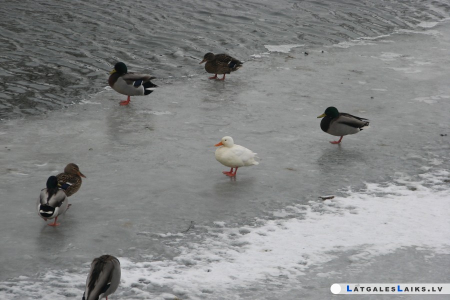 Pirms vairākiem gadiem balta meža pīle tika manīta savu pelēko draudzeņu barā Šuņicas upītē — tur, kur tagad atrodas lielveikals “Lidl”, līcītī pie tiltiņa. Toreiz daudzi pilsētnieki ziemā diezgan ilgu laiku varēja vērot, kā baltā pīle ierastās krāsas radinieku barā enerģiski aizrējās tolaik vēl neaizsalušās upītes ūdeņos. Savukārt, kad uzsala ledus, sēdēja uz tā kopā ar pārējām.