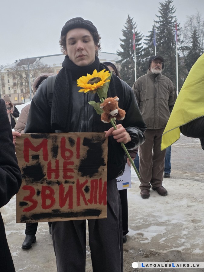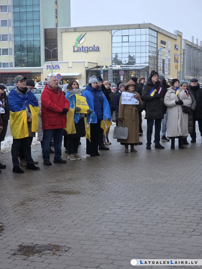 Savukārt Vienības laukumā notika mītiņš, kurā daugavpilieši pauda atbalstu ukraiņiem un ar klusuma brīdi pieminēja karā bojāgājušos Ukrainas iedzīvotājus.