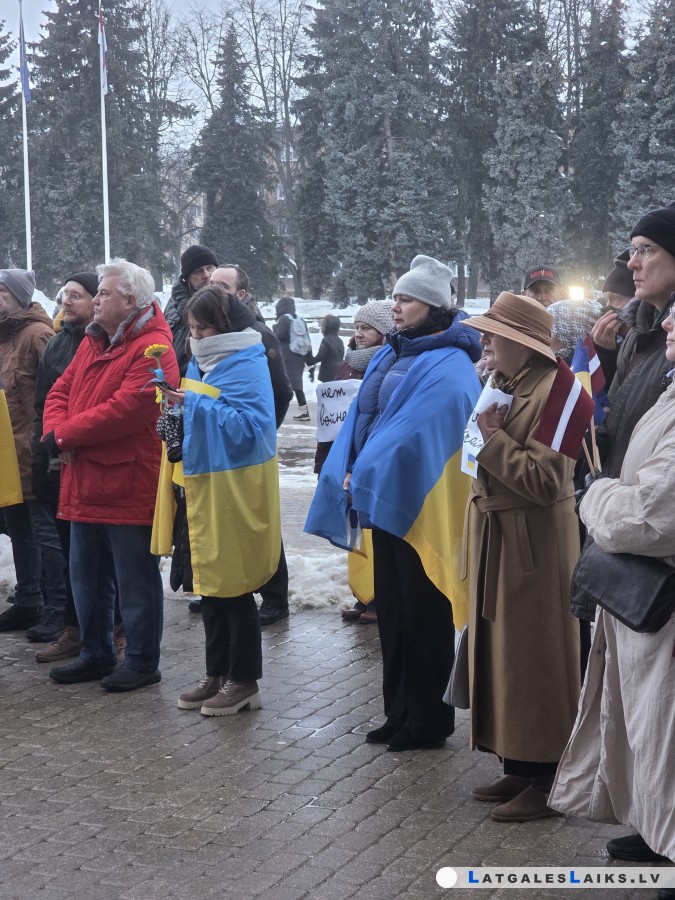 Daugavpilieši ar tradicionālo gājienu, mītiņu un koncertu atbalstīja Ukrainu kara ceturtajā gadadienā. Aptuveni simts cilvēki šajā vakarā turēja rokās Ukrainas karogus, tādējādi paužot solidaritāti mums draudzīgajai valstij, kurai uzbrukusi agresorvalsts Krievija.