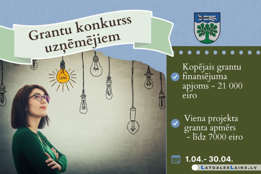 Augšdaugavas novada pašvaldība izsludinājusi konkursu par grantu piešķiršanu uzņēmēju projektiem. Konkursa mērķis ir popularizēt un veicināt uzņēmējdarbību Augšdaugavas novada iedzīvotāju vidū, veicināt jaunu un inovatīvu produktu un pakalpojumu attīstību, kā arī sekmēt esošās uzņēmējdarbības paplašināšanu.